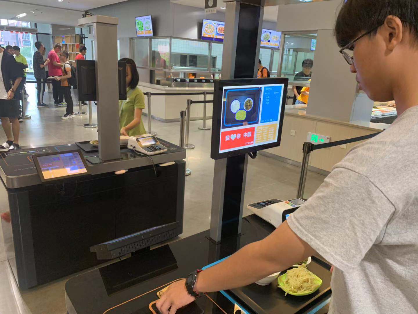而不遠處的智慧餐廳最強裝備---戈子科技視覺結(jié)算系統(tǒng),伴隨著一張張洋溢著青春氣息的面孔,正處處散發(fā)著黑科技的魅力,讓枯燥的學術知識變得生動有趣。
