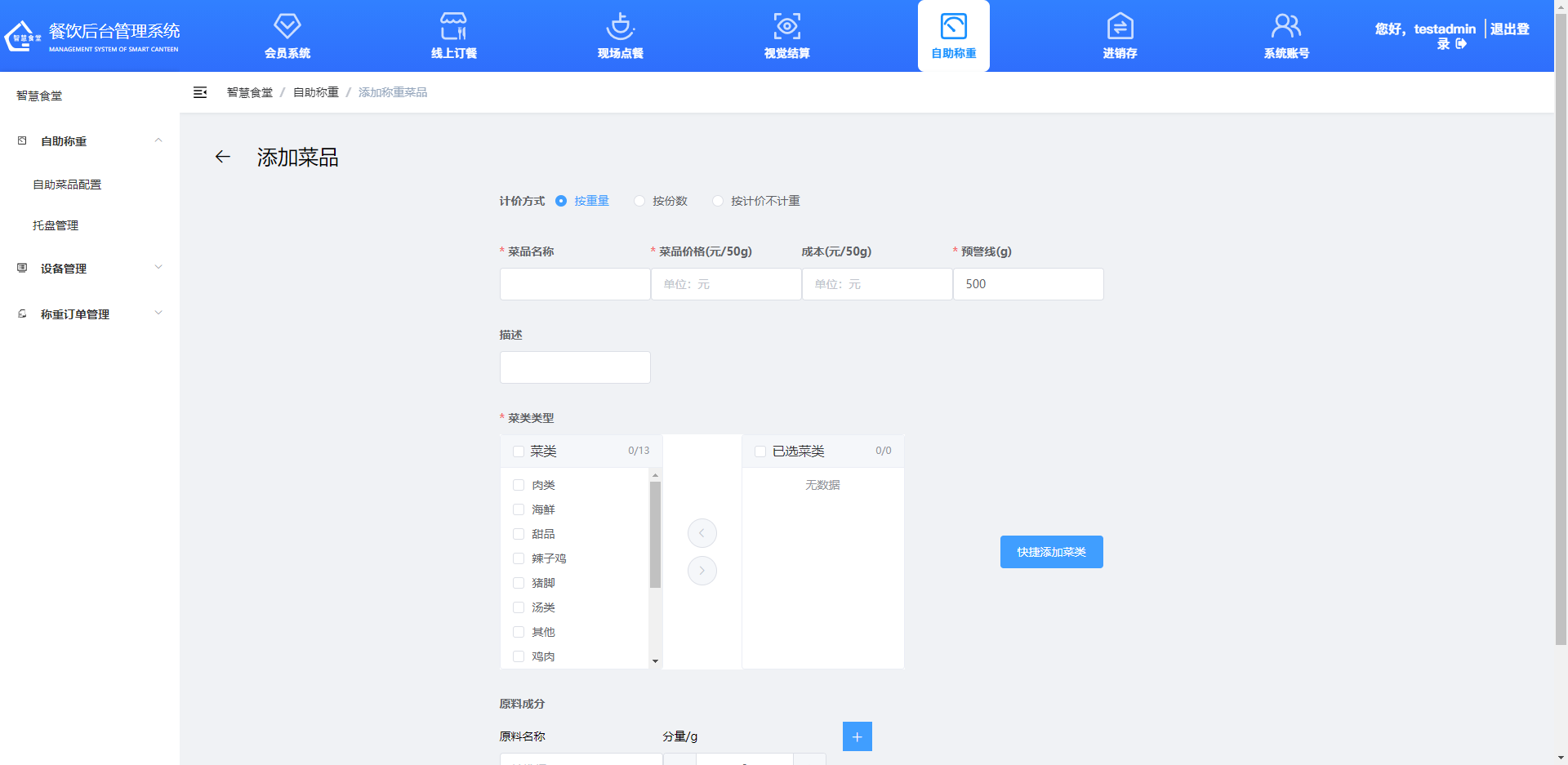 添加自助菜品