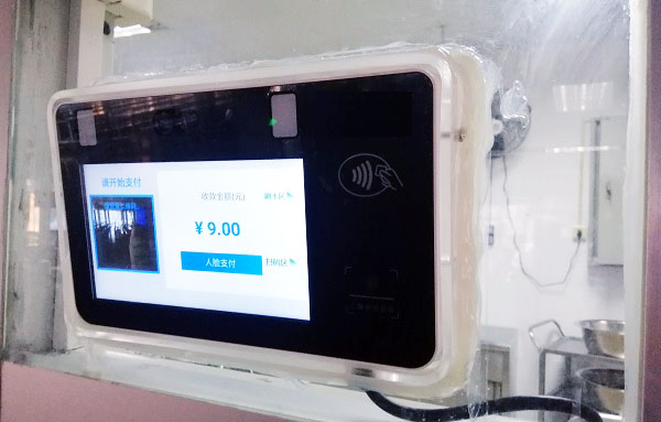 第一種刷臉就餐模式,在學(xué)校智慧食堂內(nèi)每個(gè)窗口都裝有一臺(tái)帶有人臉識(shí)別功能的智能消費(fèi)機(jī),每臺(tái)機(jī)器裝有攝像頭,可以觸屏操作,外表和普通平板電腦極為相似。學(xué)生站在“刷臉器”前不到1秒鐘,身份就會(huì)被識(shí)別出來,姓名、套餐類型等就餐信息便出現(xiàn)在屏幕上,學(xué)生確認(rèn)信息無誤后,點(diǎn)擊“確認(rèn)”即可完成支付,整個(gè)過程花費(fèi)時(shí)間不超過5秒鐘。