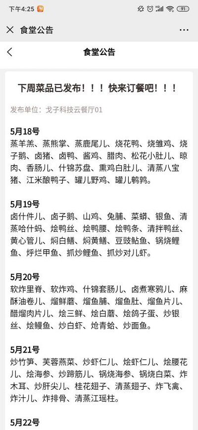首頁(yè)點(diǎn)擊“食堂公告”進(jìn)入,或者點(diǎn)擊新公告發(fā)布時(shí),首頁(yè)頂部航條
