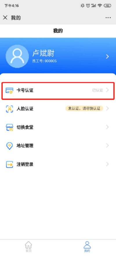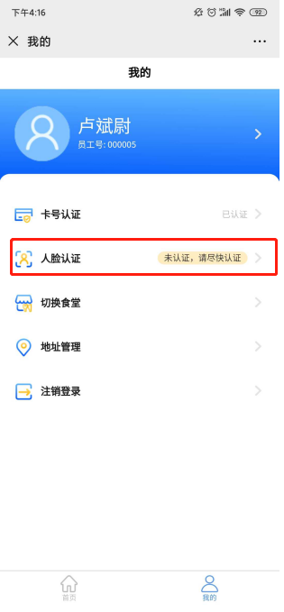 ②若顯示“未認(rèn)證,請(qǐng)盡快認(rèn)證”,則點(diǎn)擊可輸入姓名、工號(hào)、卡號(hào)進(jìn)行綁定認(rèn)證